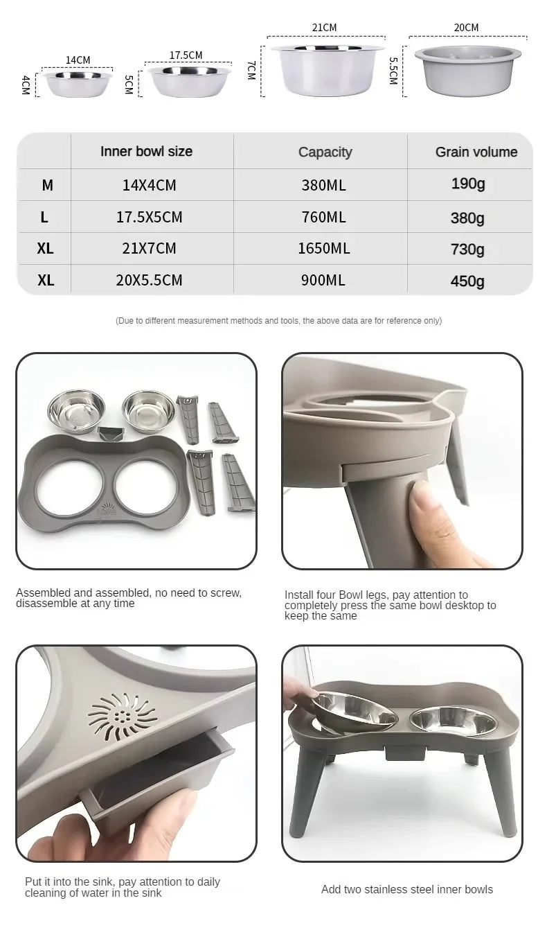 Pet food bowl with stand raised feeder dog bowl spill proof dog water bowl suitable for small, medium and large dogs and pets